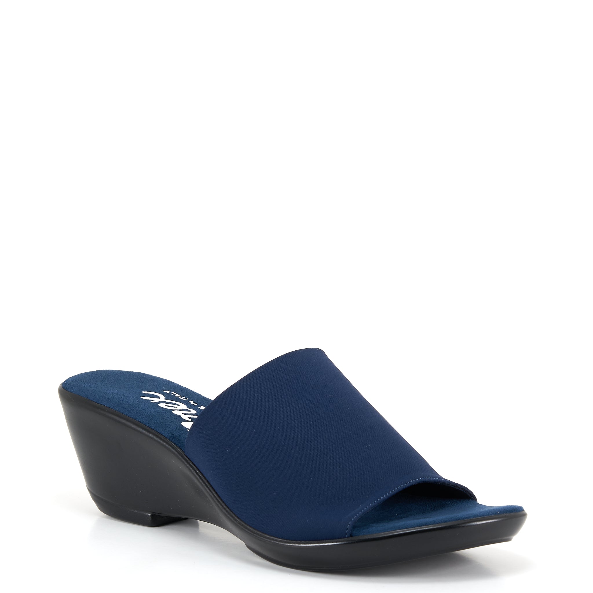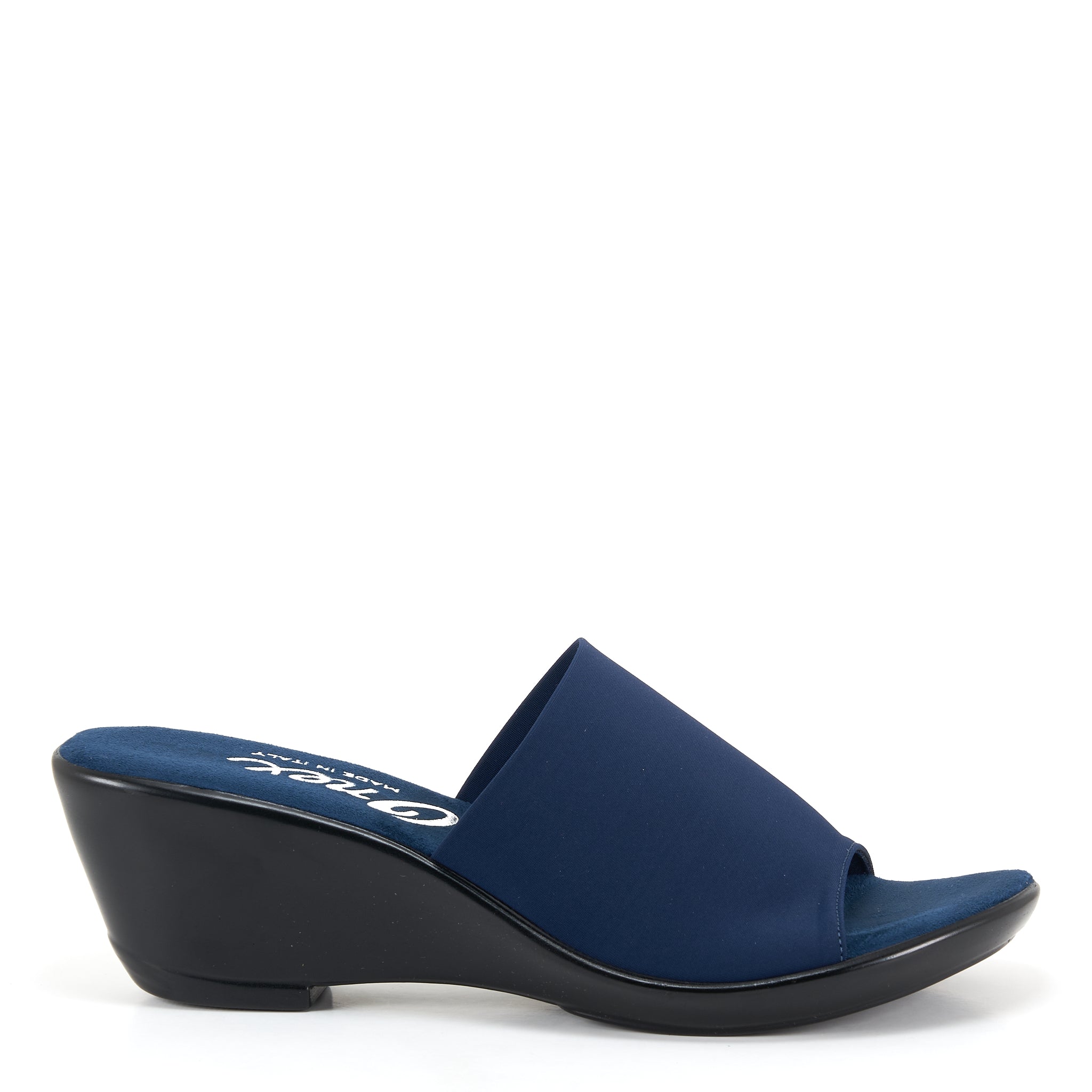 For those looking for a simple yet comfortable shoe for everyday use without all the bling, stand out with the Rory-N, a classic silhouette and variation of the Rory . Soft elastic upper and lining. Classy black low wedge heel. Soft cushioned footbed.