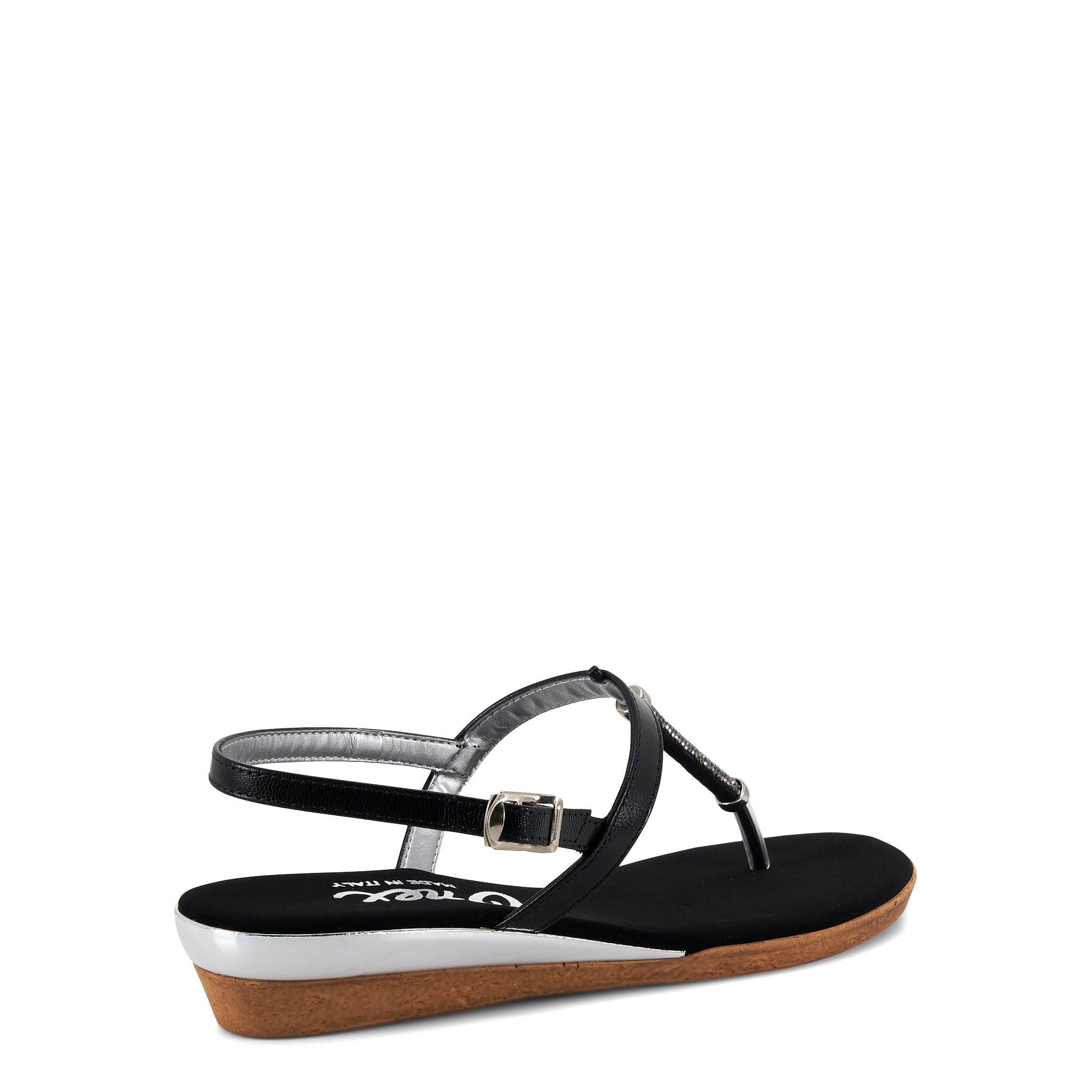 Dress up your outfit and stand out with Ava. Featuring a beautiful yet comfortable T-strap decorated with metallic rhinestones and accent pieces. Matching metallic heel cover adds a hint of glamour. Signature backstrap for adjustable fit. Cushioned insole for added comfort.