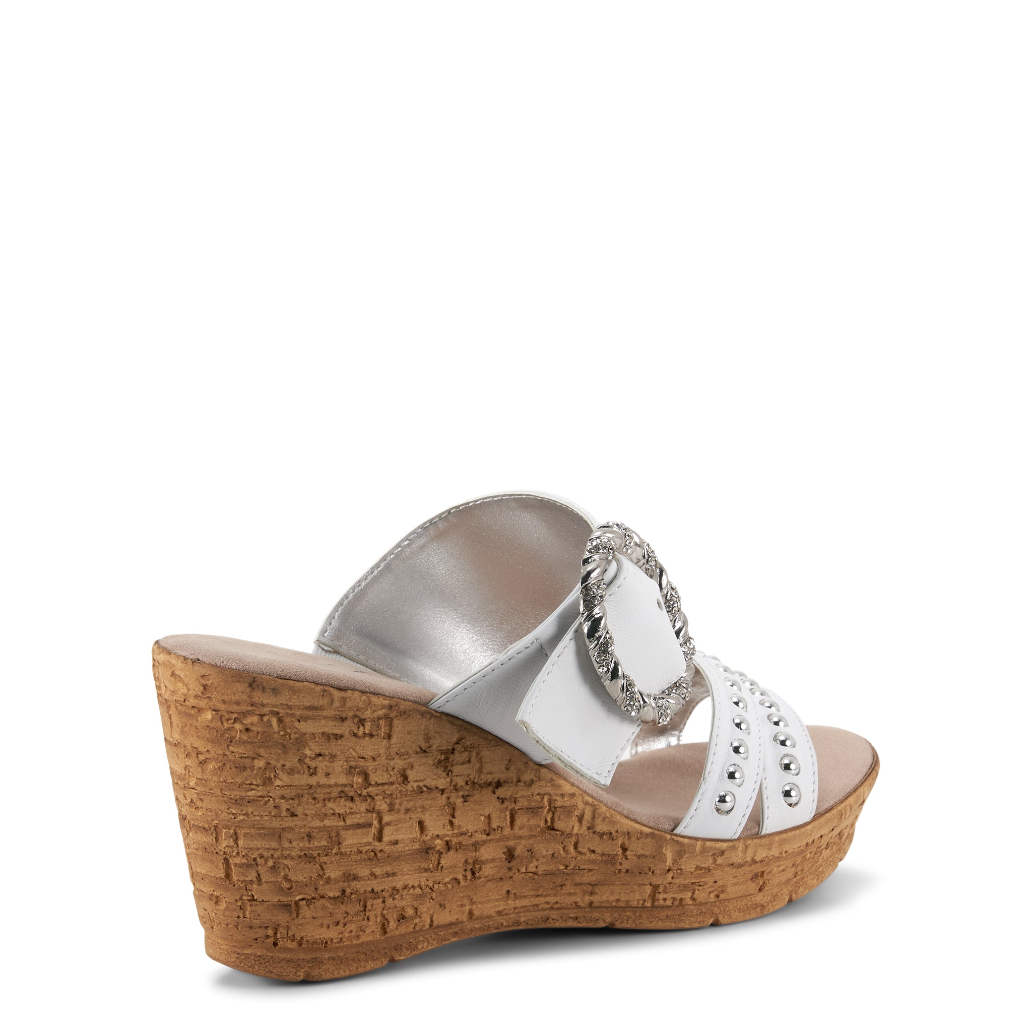 Treat yourself to bashful, sleek style with this Italian leather beauty. Show off your fashion savvy with its eye-catchy metallic studs and decorative buckle, and never worry about fit with its hidden elastic goring. Get ready to step out in style!