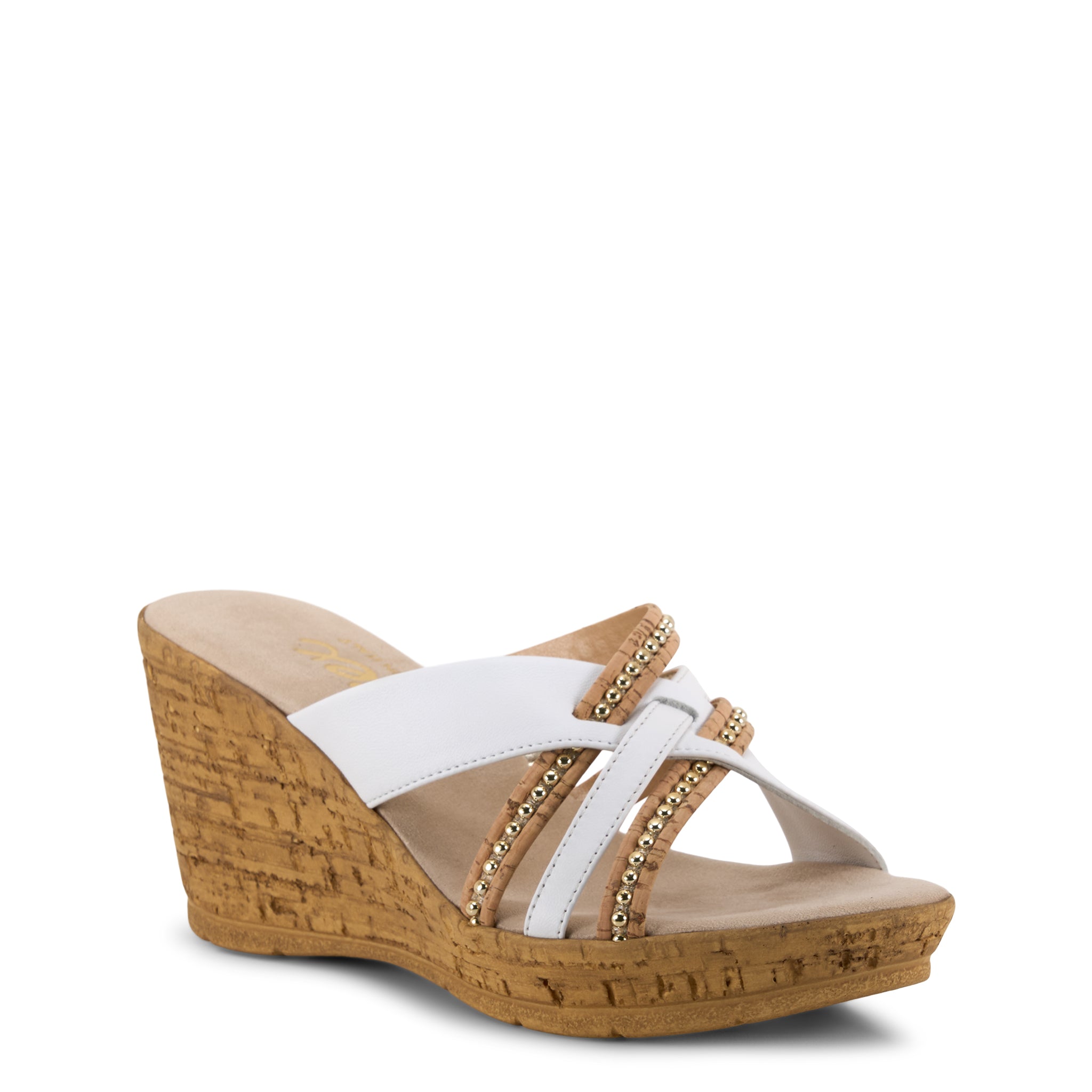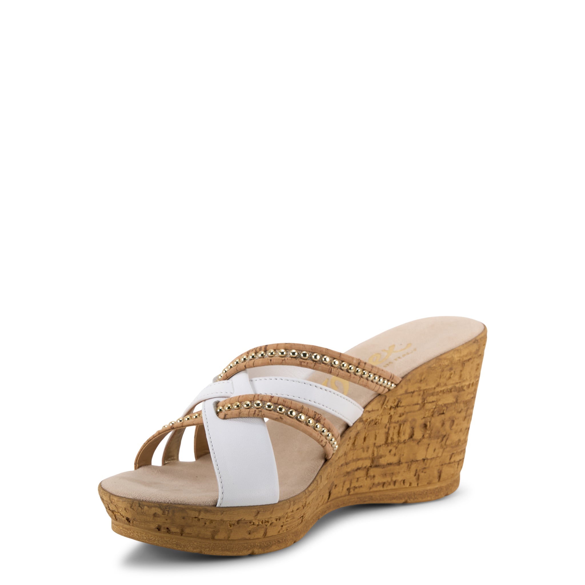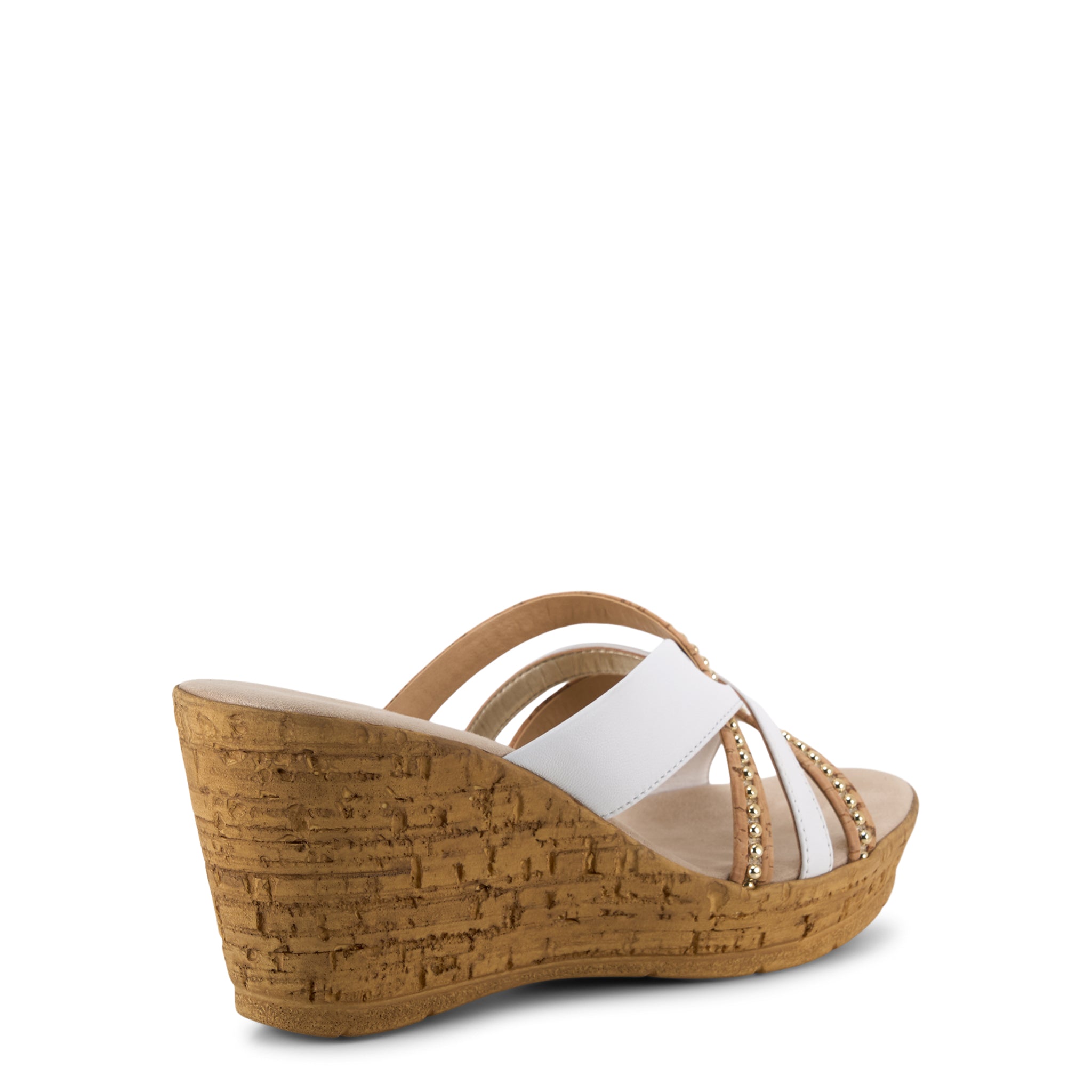 Step into effortless style with Elaine, the perfect blend of style and comfort in a wedge sandal. Featuring a sophisticated leather and cork criss-cross design adorned with rhinestone embellishments, Elaine adds a touch of glamour to any outfit. The cork wedge with cushioned footbed ensures lasting comfort and a chic, natural aesthetic, while the open-toe, slip-on design makes it ideal for casual outings.
