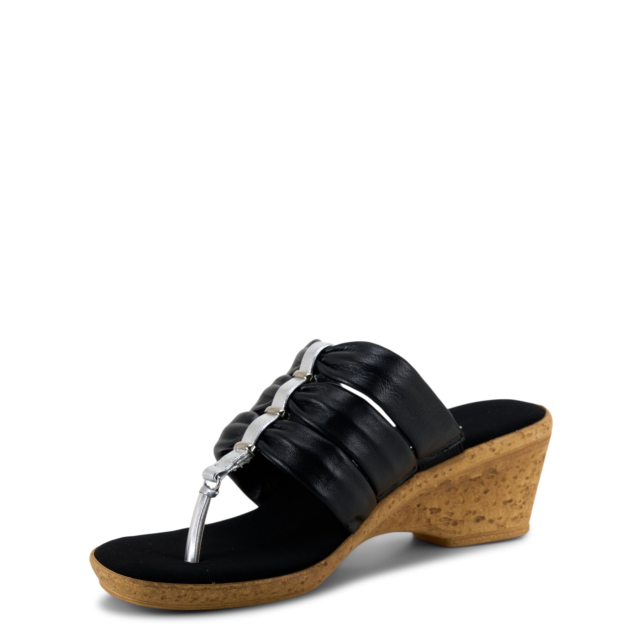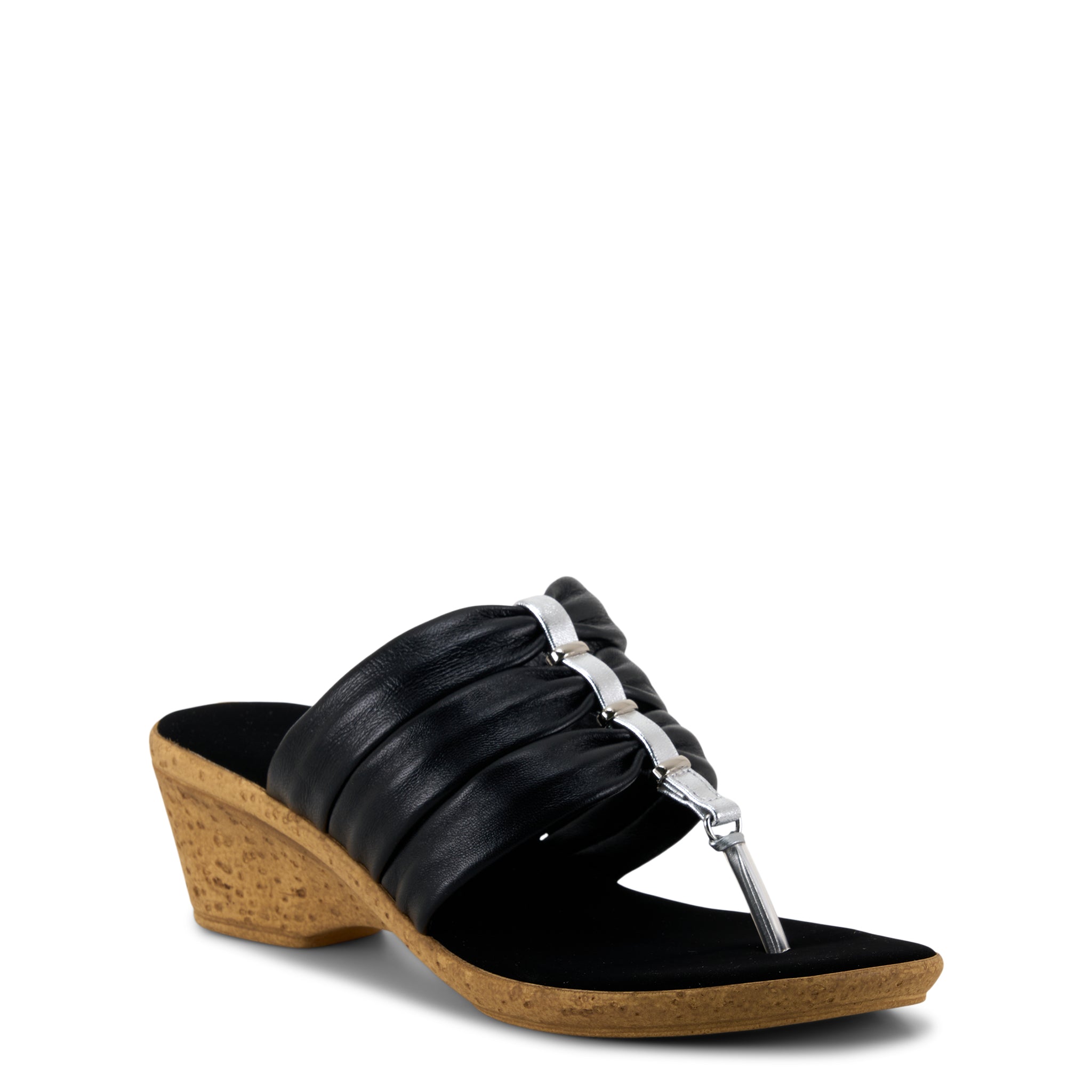 Experience the perfect mix of style and comfort with the Marisa thong wedge sandal. Featuring a sleek leather upper accented by shiny metal embellishments, this sandal adds a touch of sophistication to your casual look. The cork wedge provides natural charm and lightweight comfort, while the open-toe thong design ensures effortless wear. Ideal for summer outings, Marisa combines practicality with polished elegance.