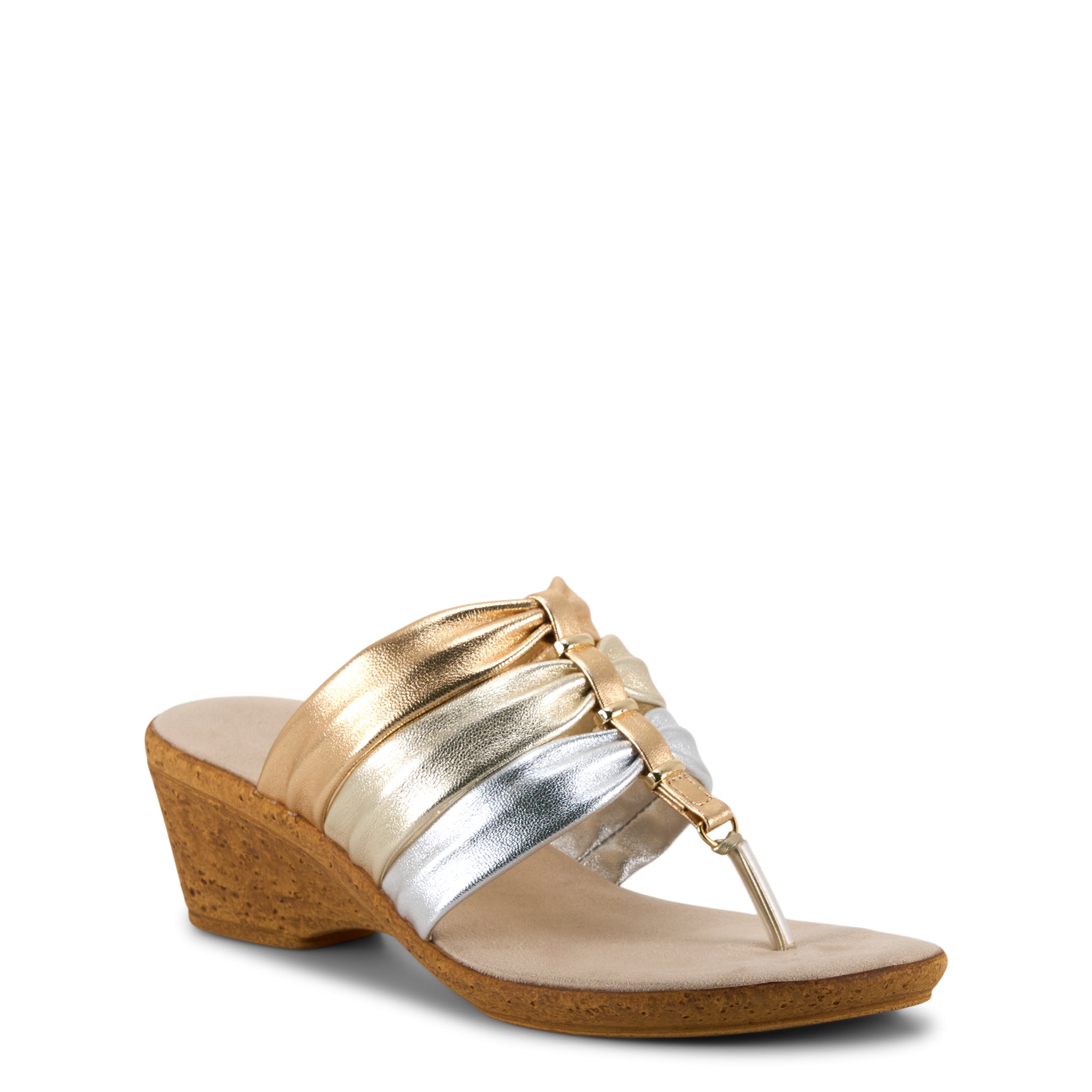Experience the perfect mix of style and comfort with the Marisa thong wedge sandal. Featuring a sleek leather upper accented by shiny metal embellishments, this sandal adds a touch of sophistication to your casual look. The cork wedge provides natural charm and lightweight comfort, while the open-toe thong design ensures effortless wear. Ideal for summer outings, Marisa combines practicality with polished elegance.