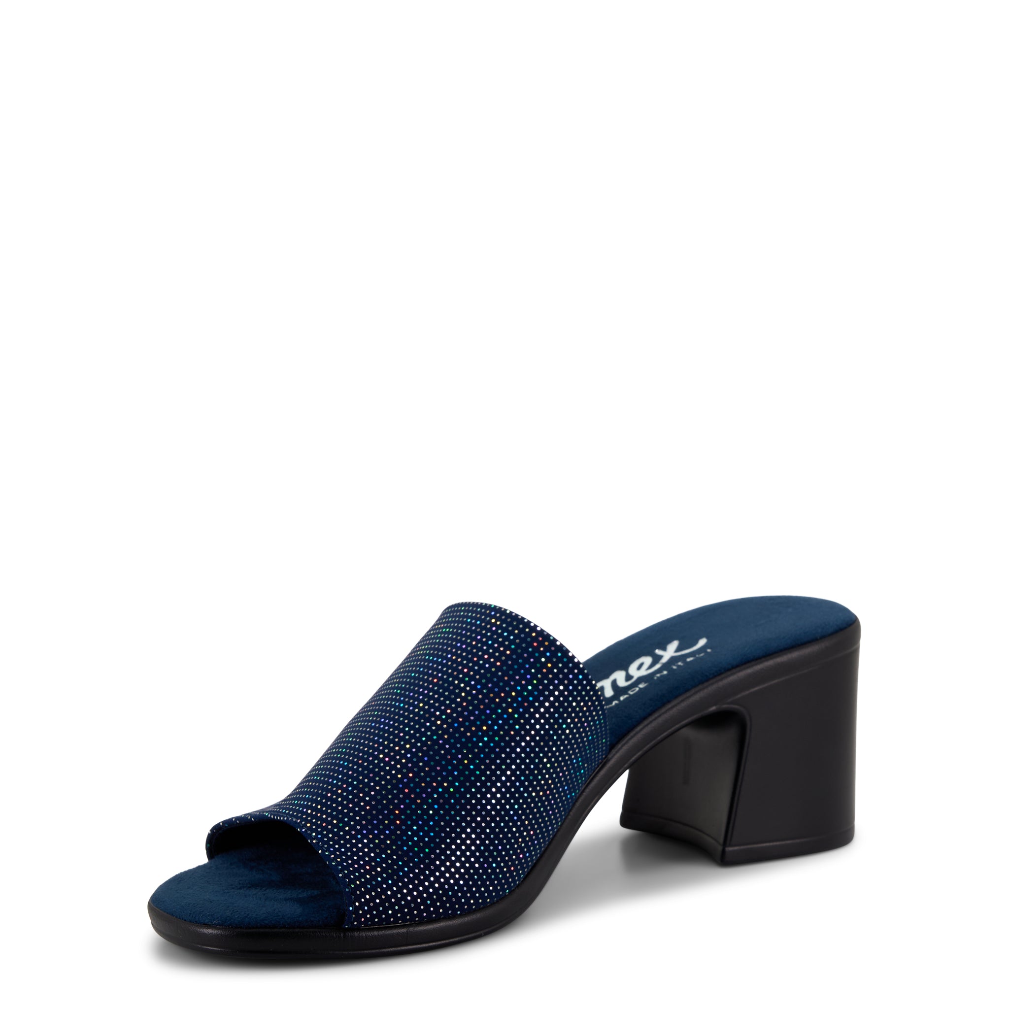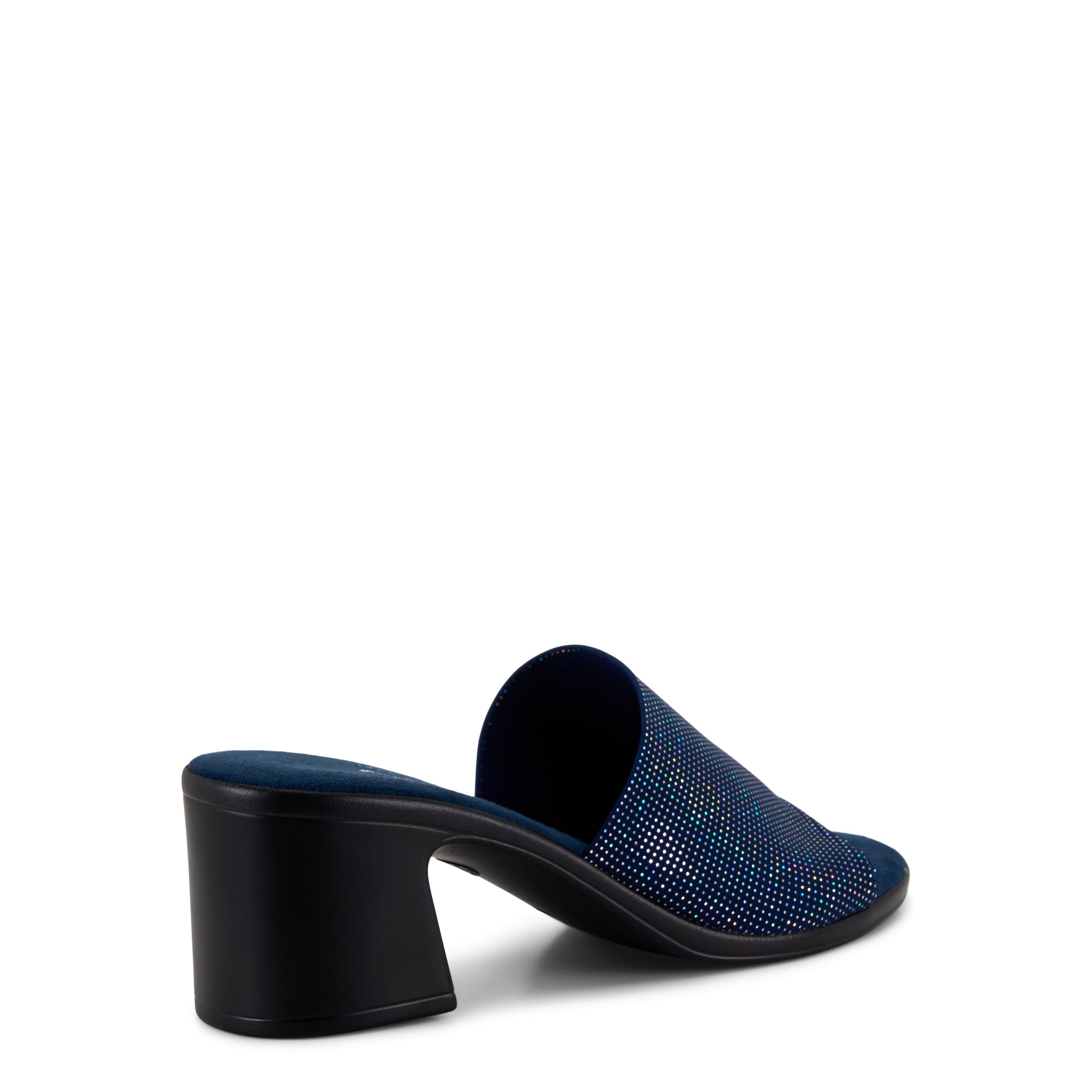Rebecca, a modern twist on a classic silhouette. Iridescent elastic upper, flexible slip-on design for all-day comfort. Perfect for evening events or adding shimmer to your everyday look. Must-have for any fashion-forward collection.