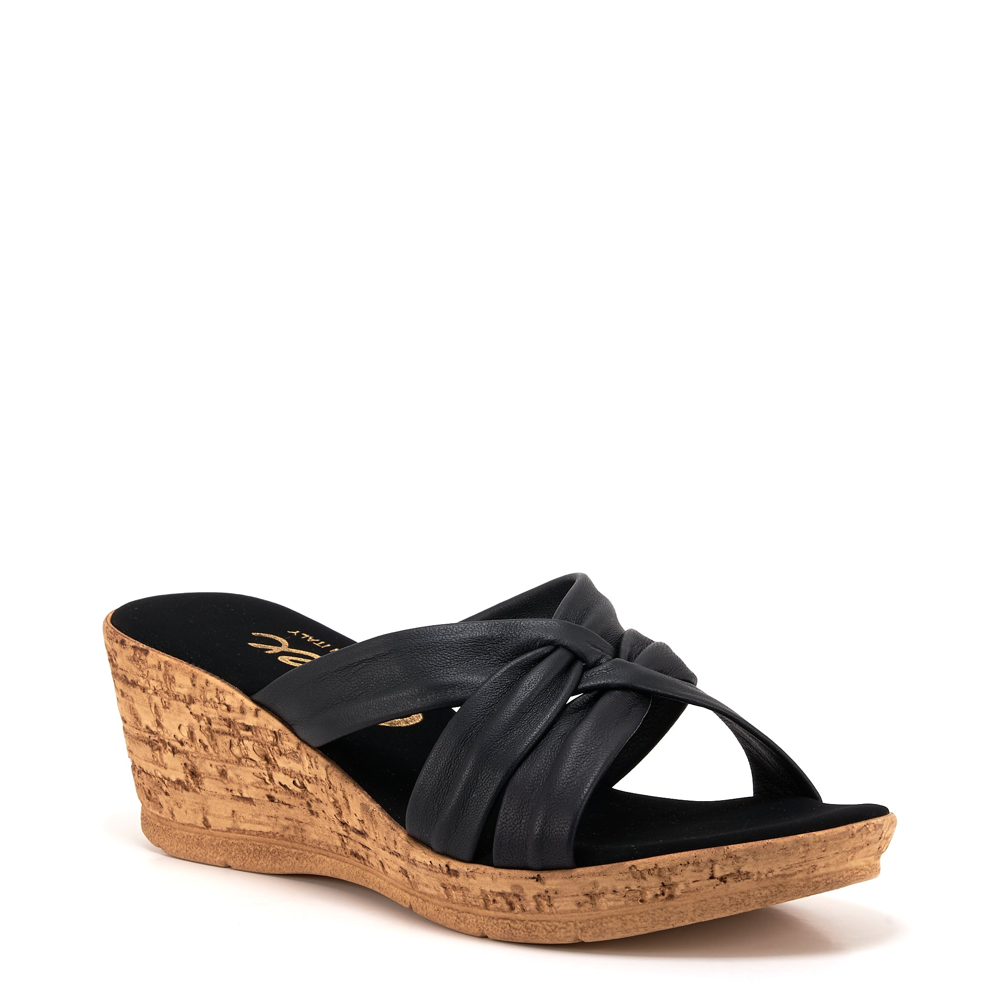 Soft leather, plain, easy, and simple will get you throughout the day. Great for doing errands or going to the beach. Now featured on a new bottom. Woven soft leather upper provides a chic-casual appeal. Slip-on silhouette with leather lining offers a snug, comfortable fit. Fully cushioned footbed for all-day support.