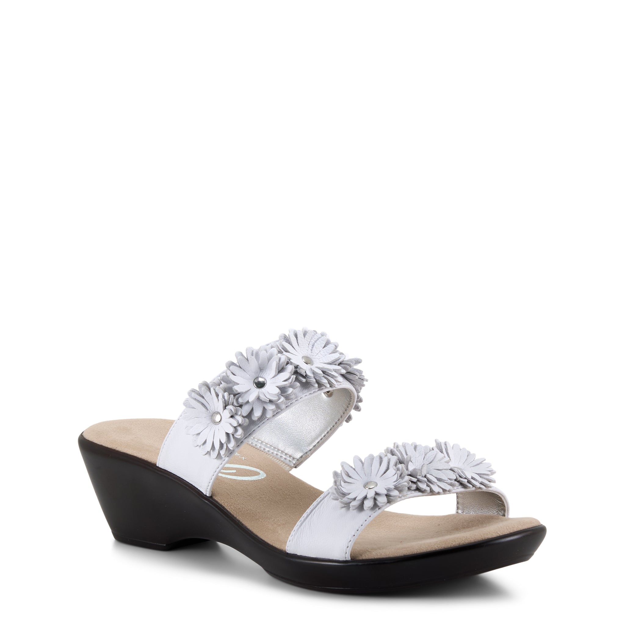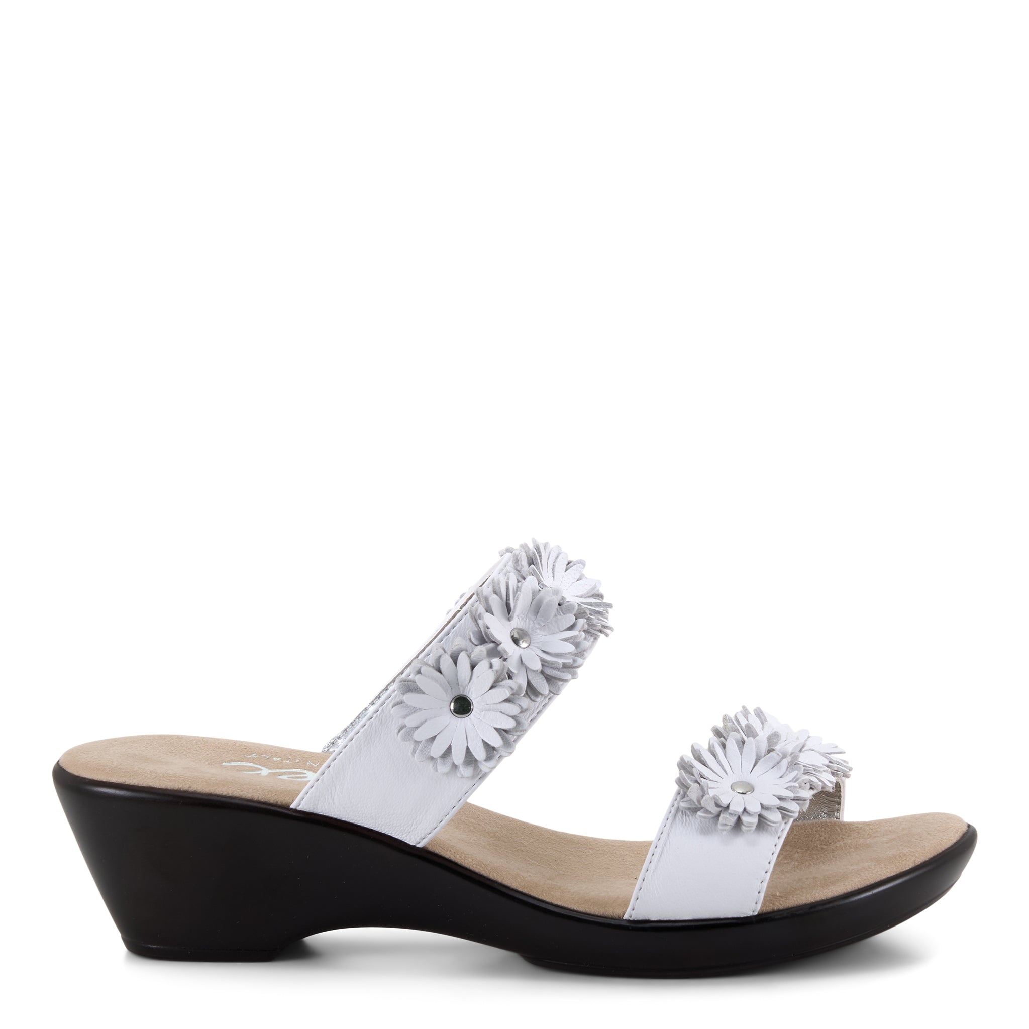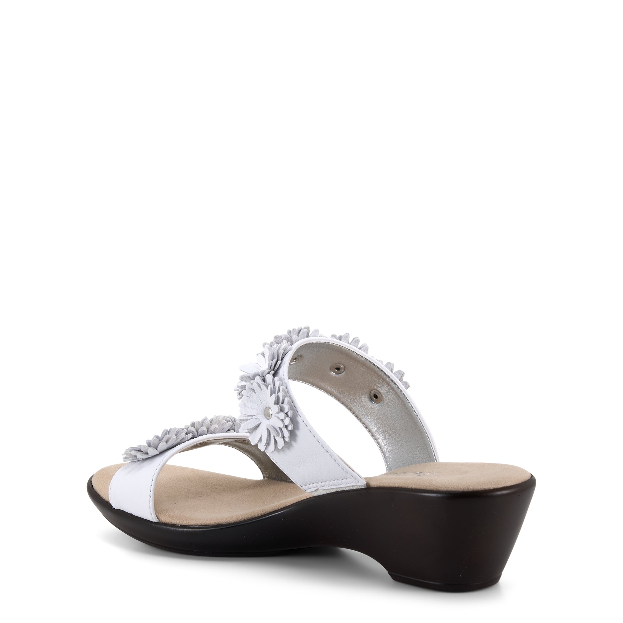Margaret pairs elegant floral leather details with reliable comfort. The two-band design and cushioned insole work together to support your feet through every day, while the charming embellishments add personality to your look. A dependable choice for those who value both style and comfort.