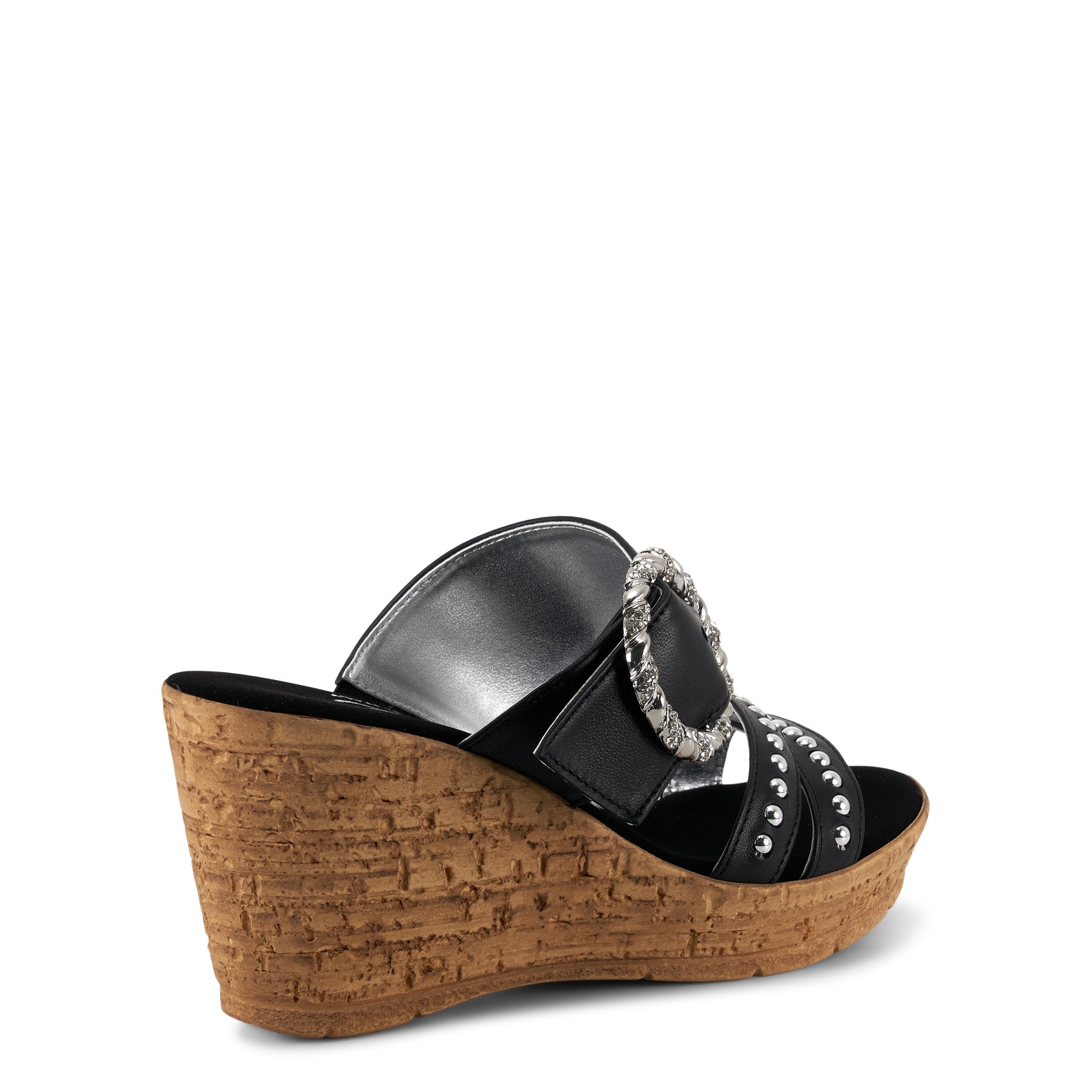 Treat yourself to bashful, sleek style with this Italian leather beauty. Show off your fashion savvy with its eye-catchy metallic studs and decorative buckle, and never worry about fit with its hidden elastic goring. Get ready to step out in style!