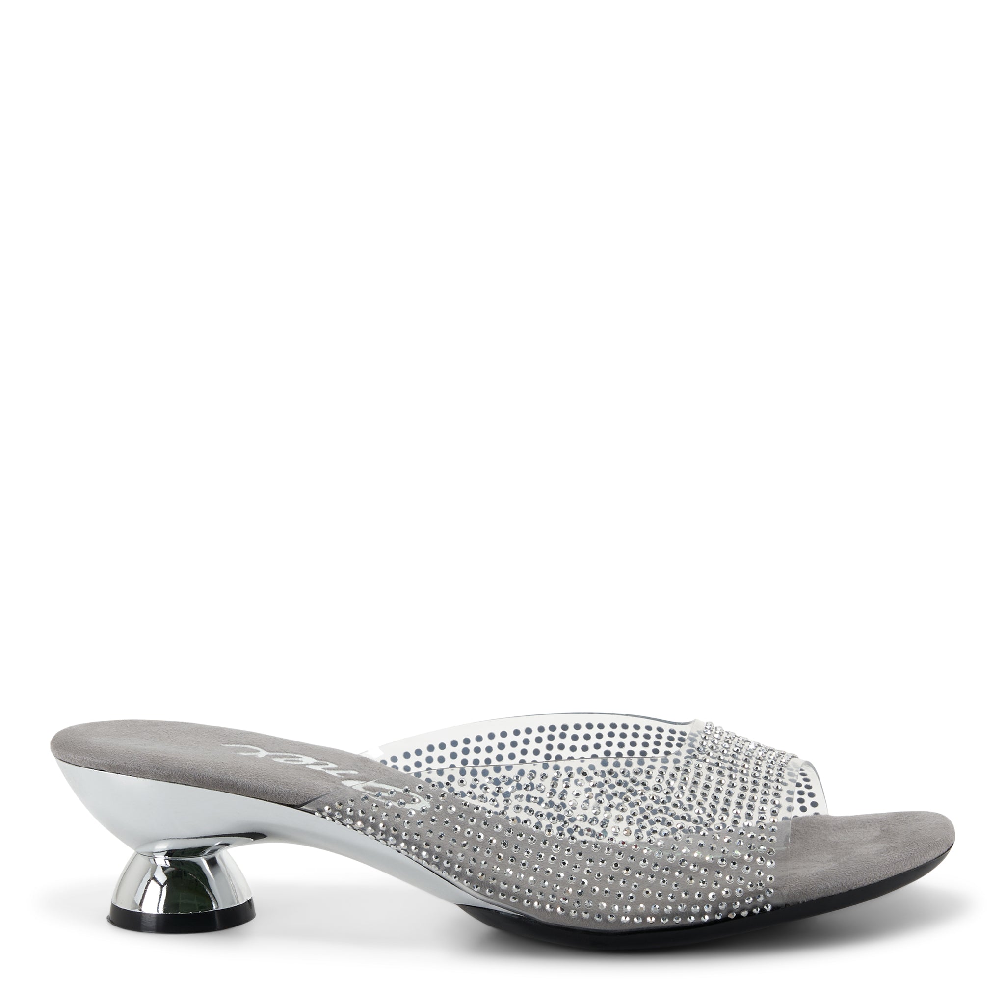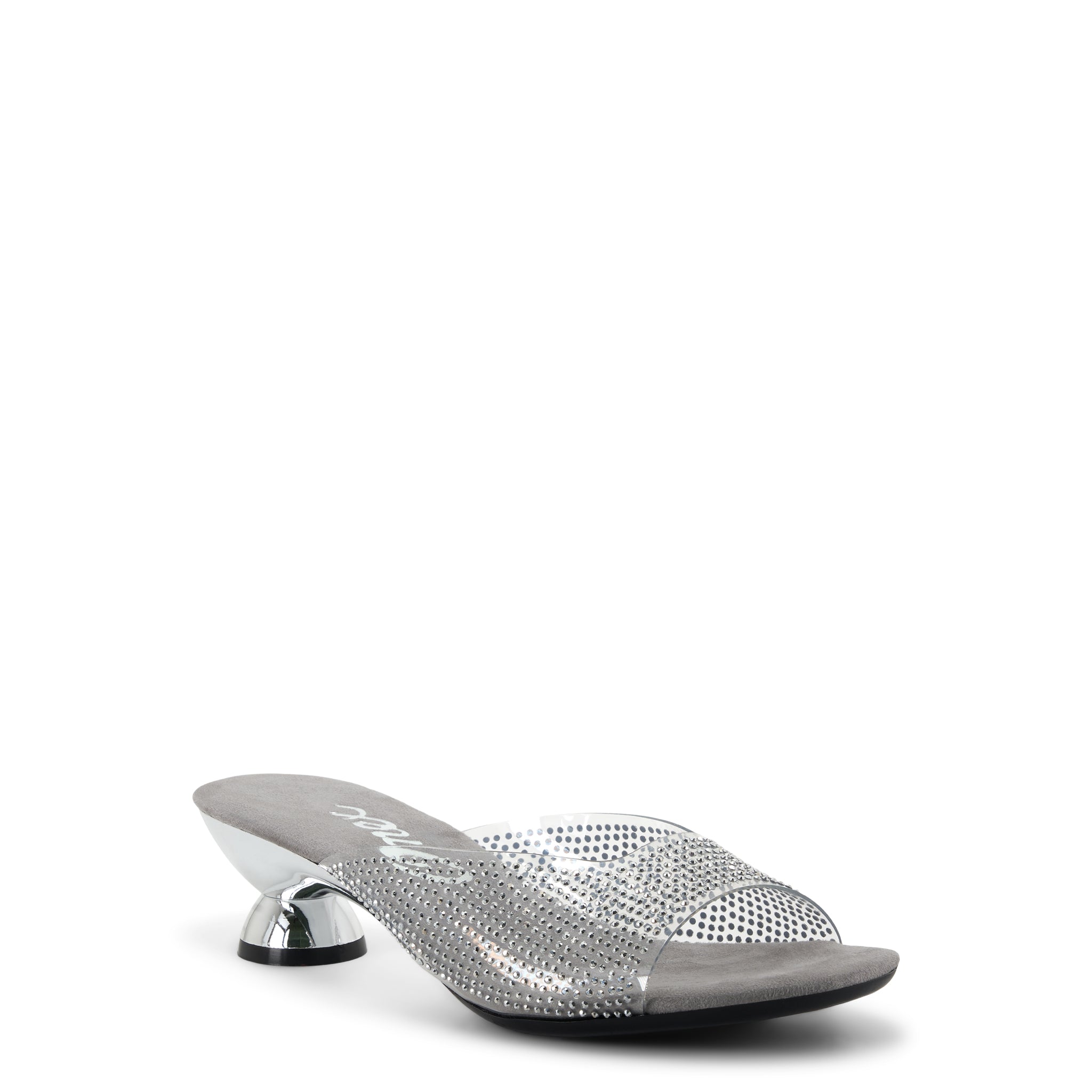 Step into a sparkly evening look with Dani ! These sleek shoes boast a clear upper that conforms to your foot, covered with the perfect amount of rhinestones to turn heads. Plus, you'll love the unique heel with its metallic accents—adding a touch of glam no matter the occasion! Comfort comes standard, thanks to a cushioned footbed, so you can wear Dani all night long. Sparkle your way through the night!