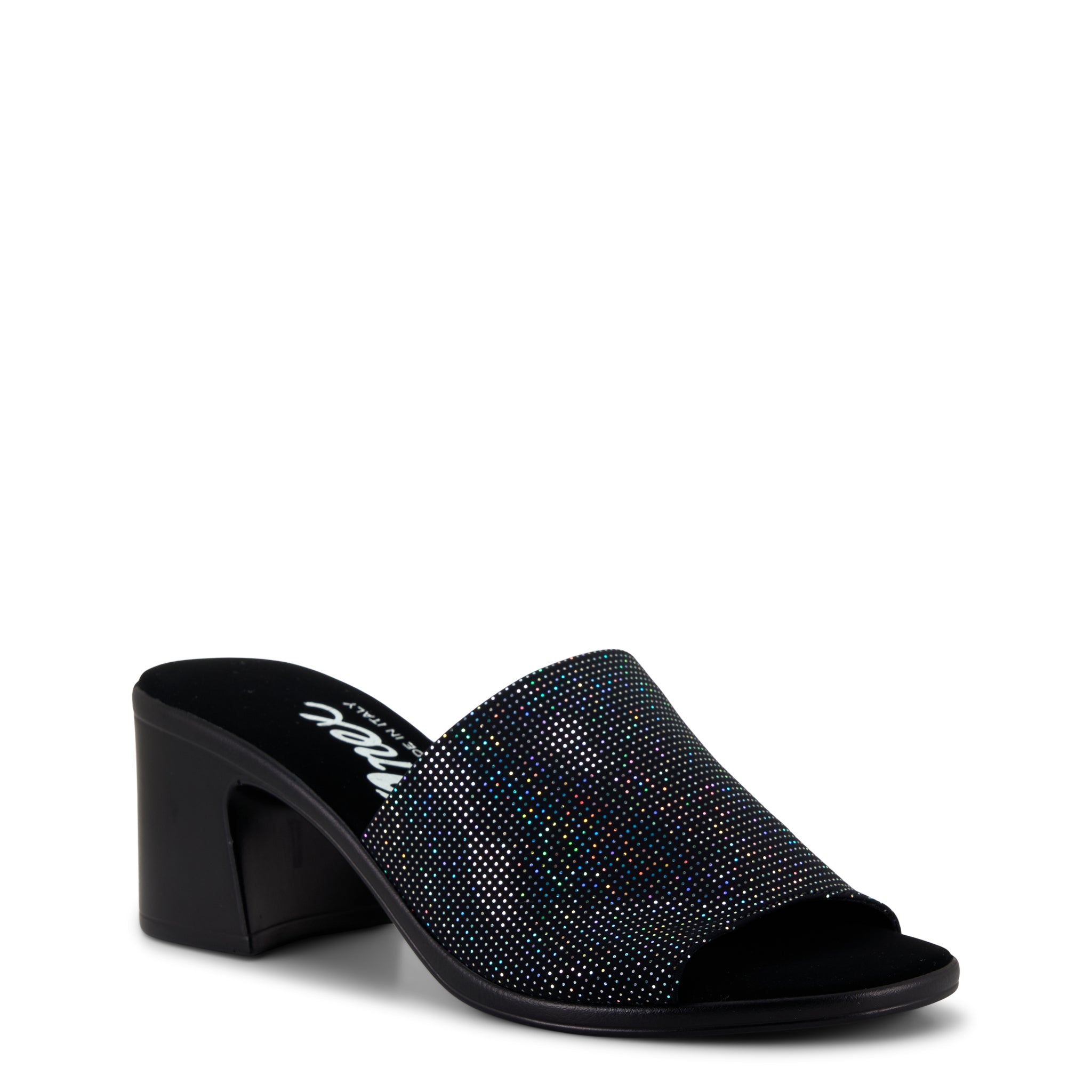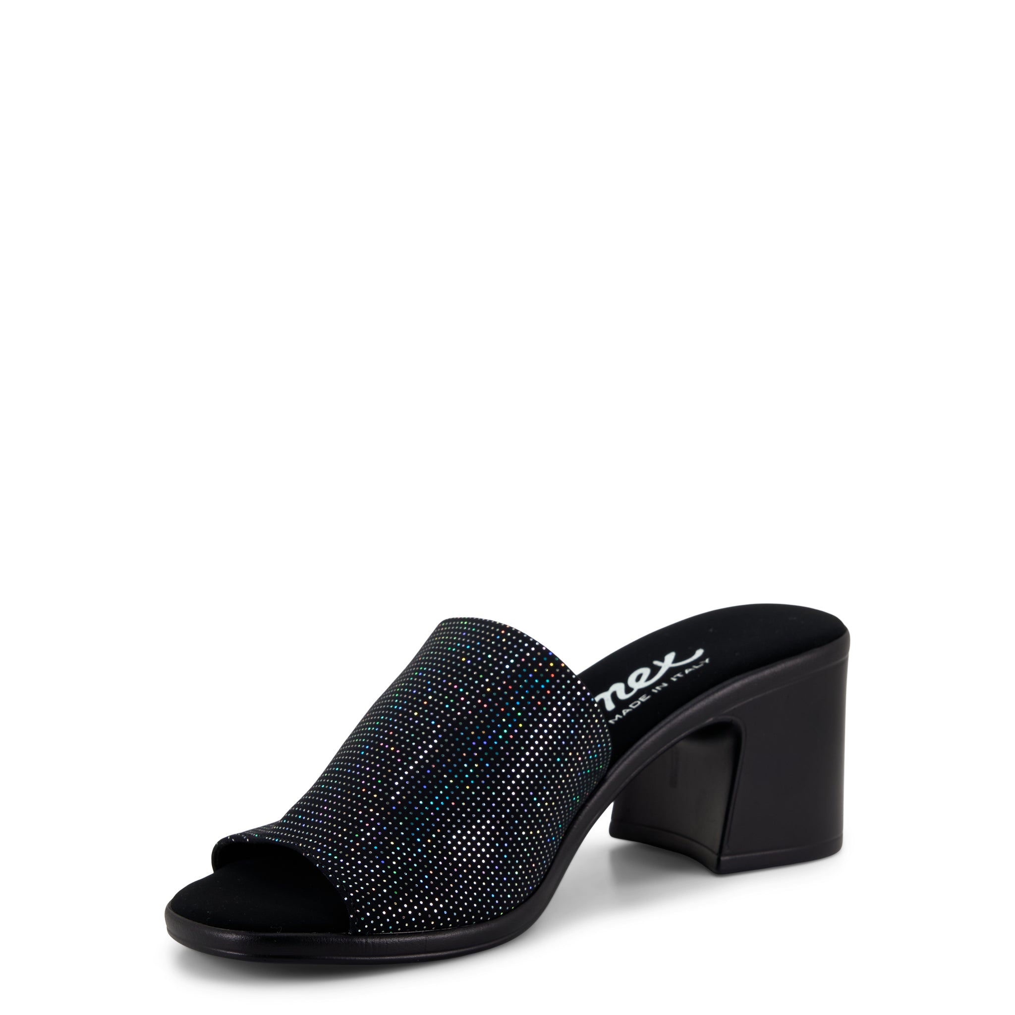 Rebecca, a modern twist on a classic silhouette. Iridescent elastic upper, flexible slip-on design for all-day comfort. Perfect for evening events or adding shimmer to your everyday look. Must-have for any fashion-forward collection.